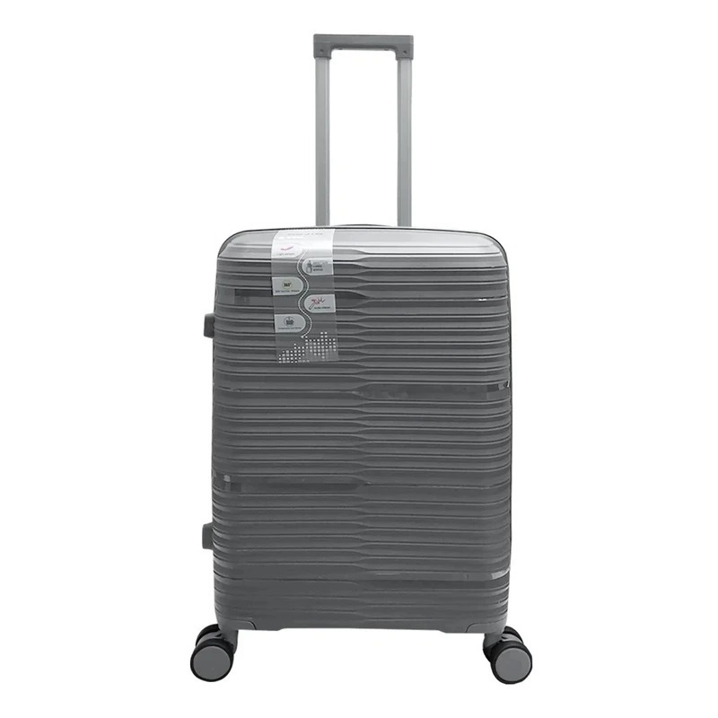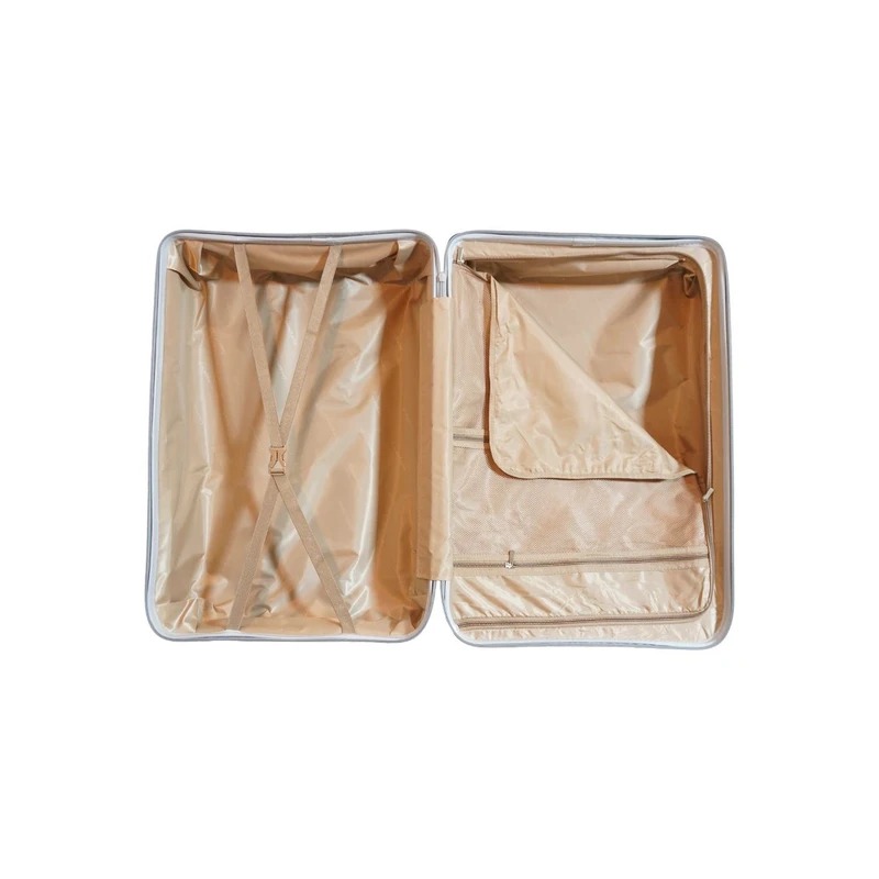 بدنه این چمدان از مرغوب ترین پلی پروپیلن با ضخامت بالا ساخته شده است که کاملا انعطاف پذیر، سبک و 100% نشکن میباشد. آستر داخلی آن از ساتن ضخیم می باشد، همانطور که پیداست این چمدان دارای چهارچرخِ دوبل بی صدا و 360 درجه قابل چرخش بسیار روان می باشد که البته ضد ضربه نیز میباشند. دسته تراولی این محصول فلزی می باشد. این چمدان دارای زیپ اصلی سایزِ 10 دوبل و ضد سرقت میباشد و بسیار مقاوم است. قفل TSA تعبیه شده روی این محصول امکان سفری ایمن را به شما می دهد. داخل چمدان یک جیب زیپدار کوچک وجود دارد که میتواند جای مناسبی برای وسایل گرانبها و مهم باشد و همچنین فضای مخصوص لباس زیر و همچنین فضای عایق مخصوص لباسهای خیس نیز دارد. بندهایی هم داخل محفظهی چمدان قرار دارد که بعد از قراردادن وسایل در داخل چمدان، میتوان برای جلوگیری از تکانخوردن وسایل، از آنها بهره برد. همانطور که میدانیم دسته چمدان یکی از قسمت های آسیب پذیر به هنگام پرت کردن چمدان ها در حمل هوایی میباشد که به واسطه طراحی خاص دسته ( مطابق تصاویر ) هنگامی که کاملاٌ داخل باشد به هیچ عنوان امکان شکستن و آسیب دیدن ندارد.