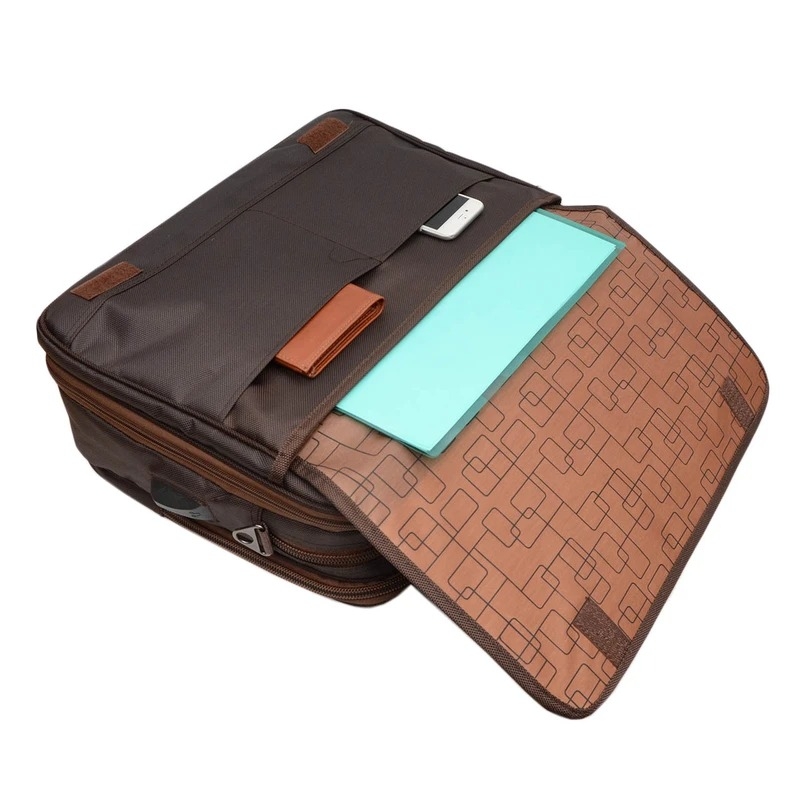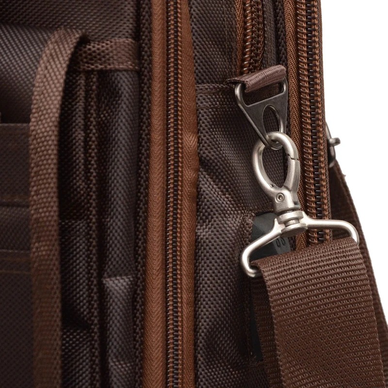 ابعاد : ۴۳.۵x۳۳x۱۳ سانتی متر - ضد آب و قابل شست و شو - قابلیت حمل به صورت رودوشی و کوله پشتی و دستی - دارای محفظه لپ تاپ و تب لت به صورت جداگانه - دارای محفظه نوشت افزار - دارای محفظه موبایل - دارای زیپ افزایش حجم - دارای ۳ جیب خارجی و ۸ جیب داخلی